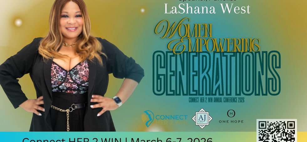Our Core Pillars of the Connect HER 2 WIN Conference 2026 theme, "WoMen Empowering Generations," are Wisdom, Wealth, & Wellness as we honor the knowledge, stories, and resilience of older generations. We are equipping all generations with tools for financial literacy, business building, and wealth transfer. Most of all, we are supporting holistic health to continue winning in mental, physical, and emotional stages in life & business.